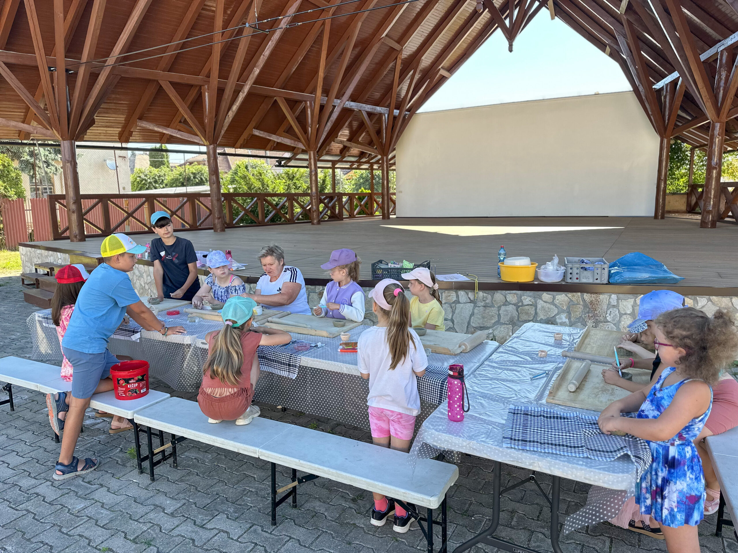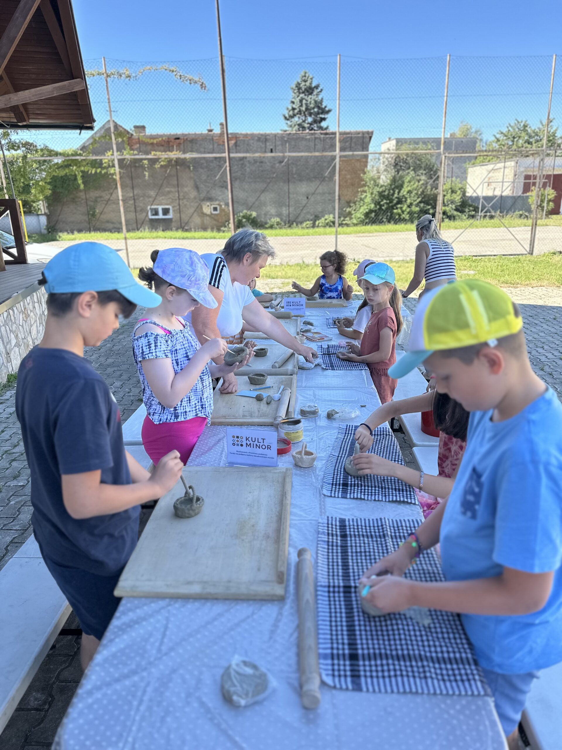 A tábor során a gyerekek megtapasztalták, hogy a legnagyobb örömet a szívből készített ajándék okozza. Lelkesedéssel vetették bele magukat az alkotásba, és Schmiedtová Oľga kézműves vezetésével a foglalkozásokon kipróbálták a fűzfavesszőből készült kosarak és a kerámiatárgyak készítését. A hét folyamán Kovács Jana irányításával illatos gyertyákat és dekupázs technikával díszített ajándékdobozokat is készítettek.